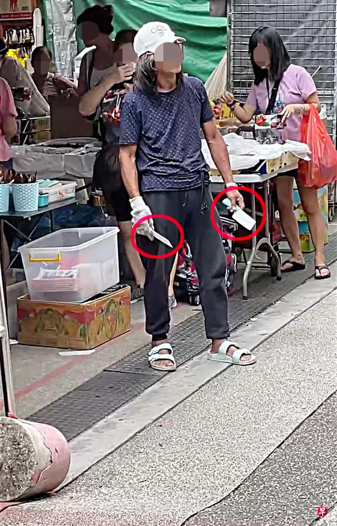 没想走访后的隔天(7月1日)上午11时许,这名阿叔又因杂物和纸皮问题,跟楼下店屋的员工杠上,甚至还掏出两把刀。