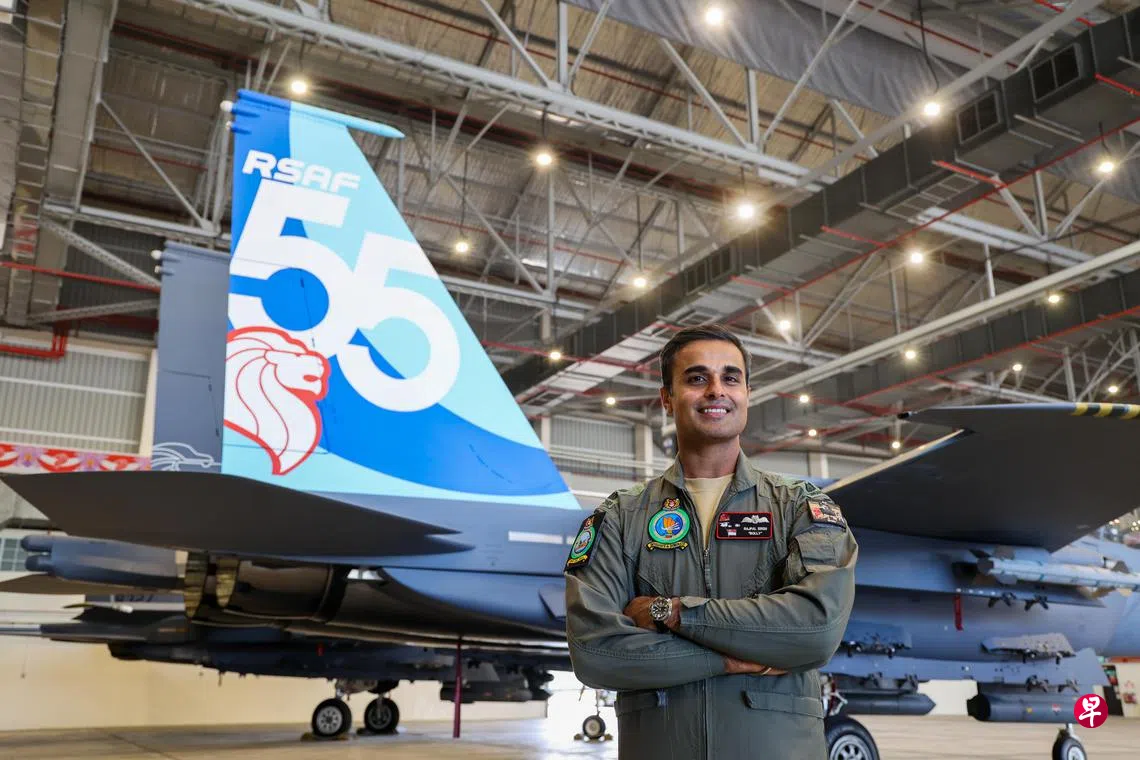 悬挂巨型国旗飞过舞台上空的CH-47SD契努克直升机飞行员拉杰帕尔·星中校(Rajpal Singh,39岁)领导的126中队,今年首次作为契努克直升机中队参加国庆庆典,这让他感到非常兴奋。他早在2007年就已作为仪仗队的一员,参加了首次在滨海湾浮动舞台举行的国庆庆典。