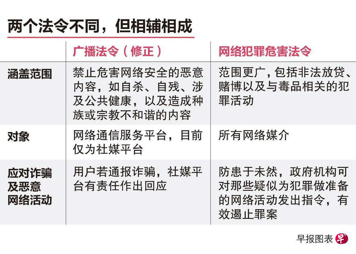 政府日后可对潜在网络犯罪活动发出指示,制止本地居民接触可造成伤害的内容。新法生效后,隐私和言论自由将会继续受到保障。