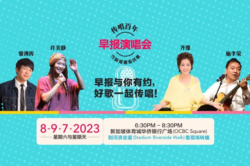 由《联合早报》呈献的演唱会“传唱百年——当新谣邂逅民歌”,本周末连唱两场,没有票的观众也能在场外观看转播。
