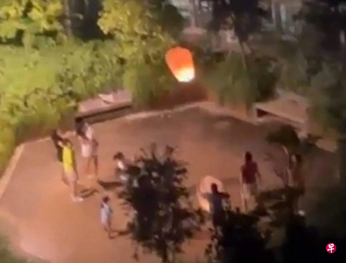 根据在群组里流传的视频,至少10人聚集在露天花园放天灯,其中包括数名孩童。至少三盏天灯被陆续放飞,缓缓向远处的组屋区飘去,其中一盏天灯升空时还差点卡在树梢上。