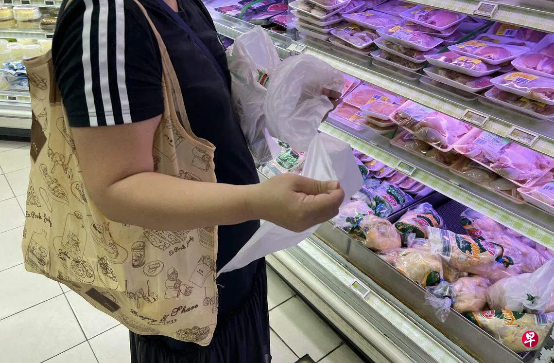 《联合早报》记者上星期三(7月5日)前往六家大型超市观察,看到一名中年女子仅买一个小物品,但也将其放入一个免费塑料袋提走;另有一名妇女出手敏捷,把一叠免费塑料袋塞进包里;也有人拿了透明塑料袋装放牛奶、饼干、一次性内裤等。