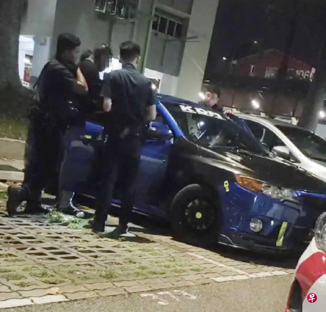 32岁男子疑因持有危险武器及涉毒,警方大阵仗到义顺组屋停车场捉人。