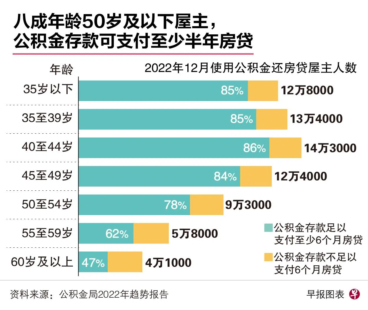 过去三年里,每年平均有大约80万名屋主用公积金存款支付房屋贷款。每十名50岁以下的房主中,有八人的普通户头存款足以支付至少半年房贷。