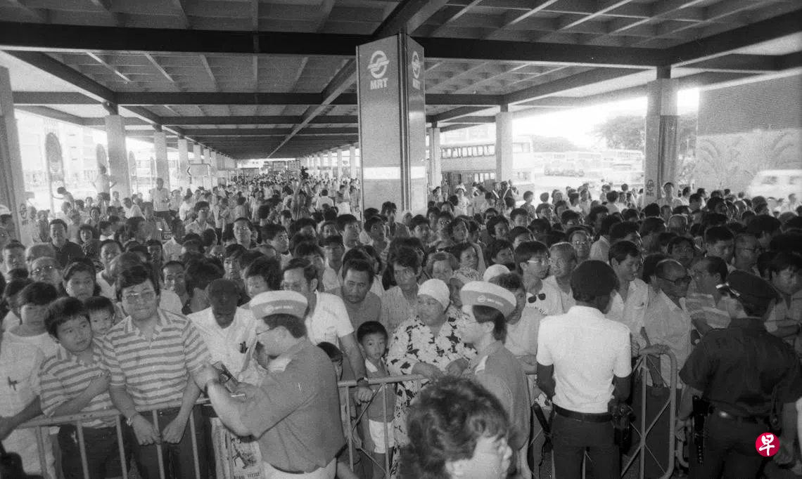 1987年11月7日,我国地铁系统首日通车,图中画面显示数千人怀着兴奋的心情来到举办通车仪式的大巴窑地铁站外排队。他们迫不及待想要体验乘坐首趟地铁列车的滋味。