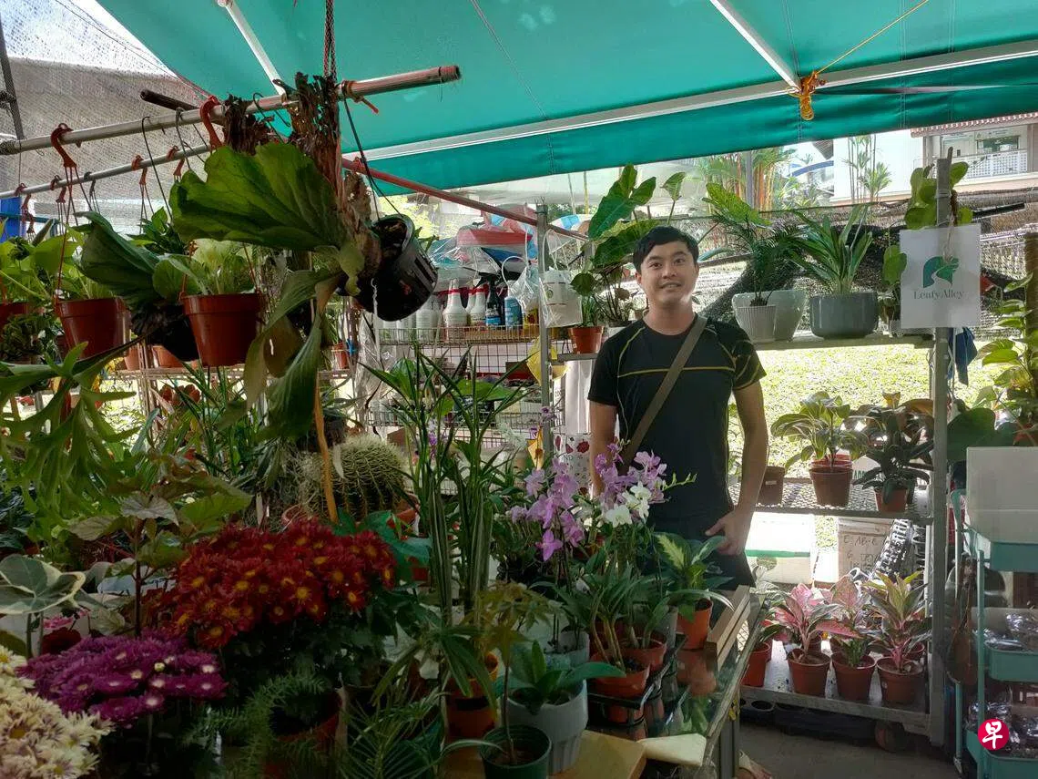 去年6月,他决定创业,在阿裕尼2道第117座组屋的巴刹摊卖花,摊位今年3月因集体装修工程而暂时停业。