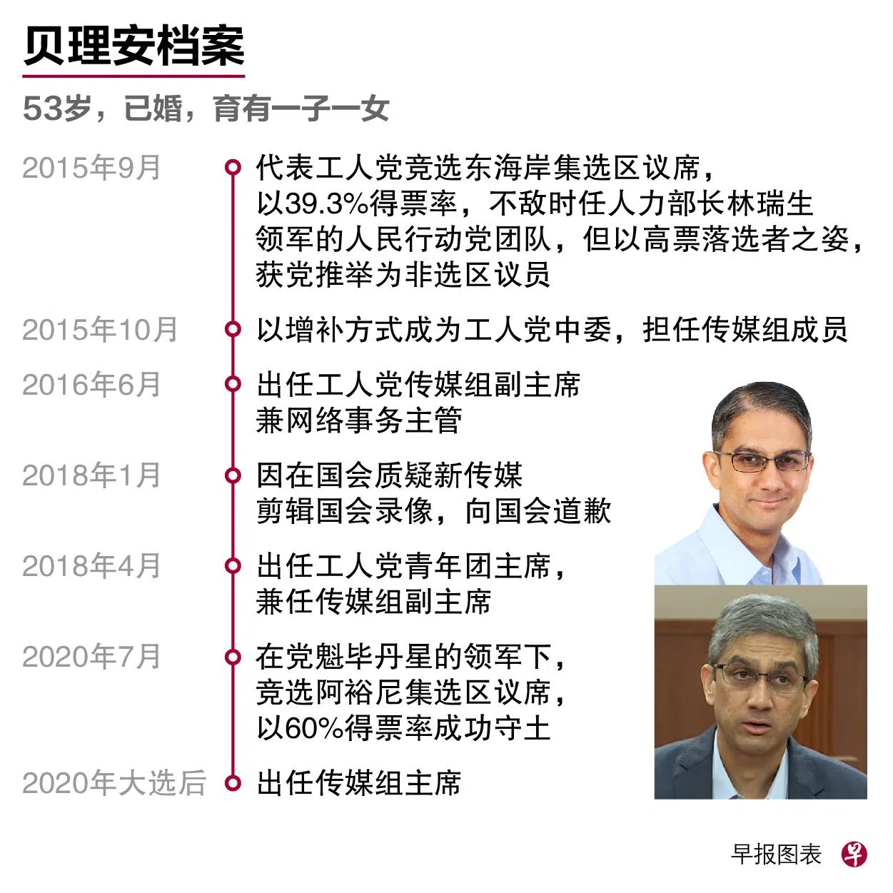 2015年成为党中委的贝理安,党务责任也逐年加重,从最初的传媒组成员,一路获提拔至传媒组主席,是工人党与媒体之间的重要对接。间中他也一度执掌青年团。贝理安也是阿裕尼—后港市镇理事会副主席。