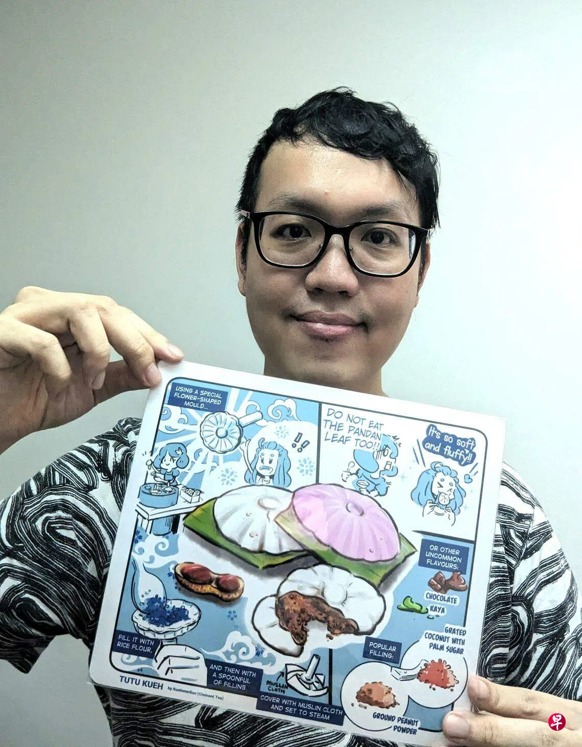 一直热衷于绘制漫画故事的陈伟杰(36岁,销售经理)六年前在为漫画找寻新题材时,无意中与糕点结缘,就此开始以不同的糕点为主题,绘制“糕点漫画”(Kueh Comic)。在探索糕点方方面面的同时,他也希望与公众分享有关糕点的知识。