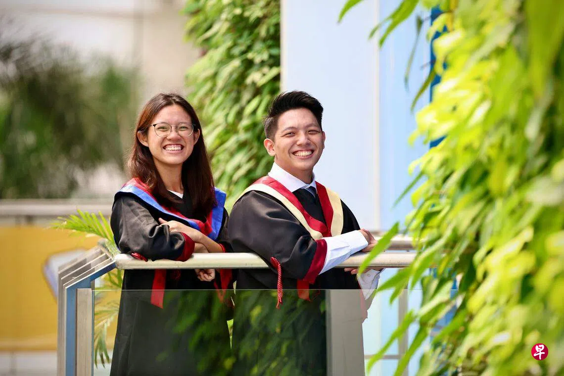 工艺教育学院星期五(7月21日)举行毕业典礼。今年共有1万4091名毕业生,其中17名优秀生获颁各个荣誉奖项,郑洁慧和周嘉瑞就是其中两人。