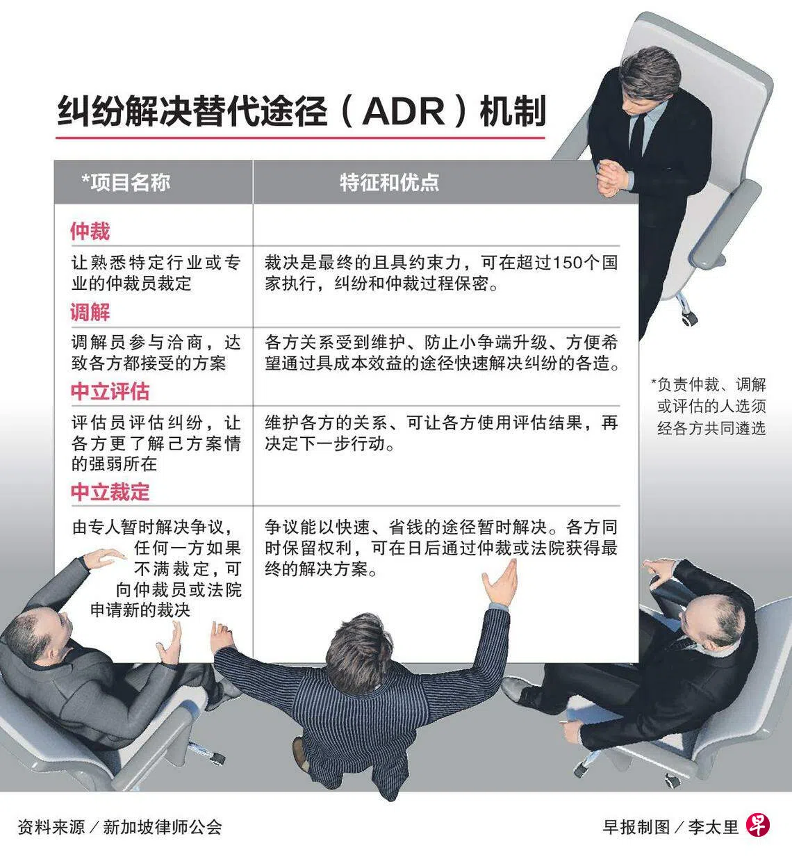 律师公会从2007年至2023年,分别推出五个纠纷解决替代途径(Alternative Dispute Resolution,简称ADR)机制,如今进一步探讨扩大服务范围,也纳入身体损伤(personal injury)和财产损失的纠纷。