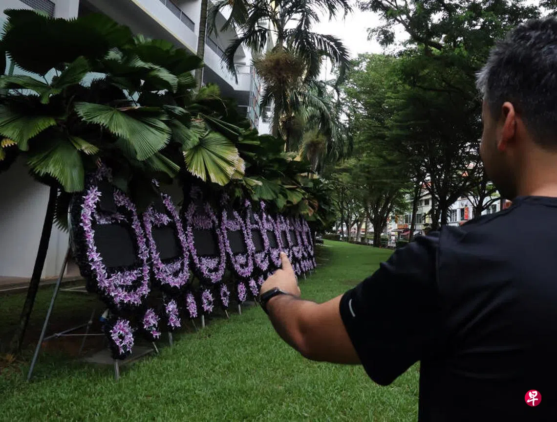 这起事件发生在合乐路第51座多层停车场底层旁的草坪上。读者黄先生(42岁,房地产经纪)告诉《新明日报》,大约一个星期前,有居民在停车场底层设置灵堂,并在草坪上摆放了10个电子花圈。岂料,丧礼结束后五天,电子花圈仍留在原地。“丧事结束估计已经有五天了,我看到其他的东西都被收走了,唯独就留下了这10个电子花圈。”