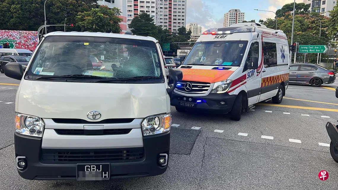 这起车祸发生在星期二(7月25日)早上8时左右,地点是裕廊镇大会堂路和裕廊东1道的交界处。