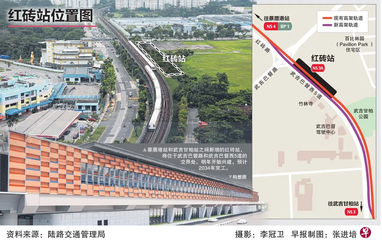 位于地铁南北线蔡厝港站和武吉甘柏站之间新增的红砖站将在明年开始兴建,预计2034年完工。到时,附近居民乘搭地铁到市中心、裕廊湖区和兀兰区域中心时,车程将缩短多达15分钟。
