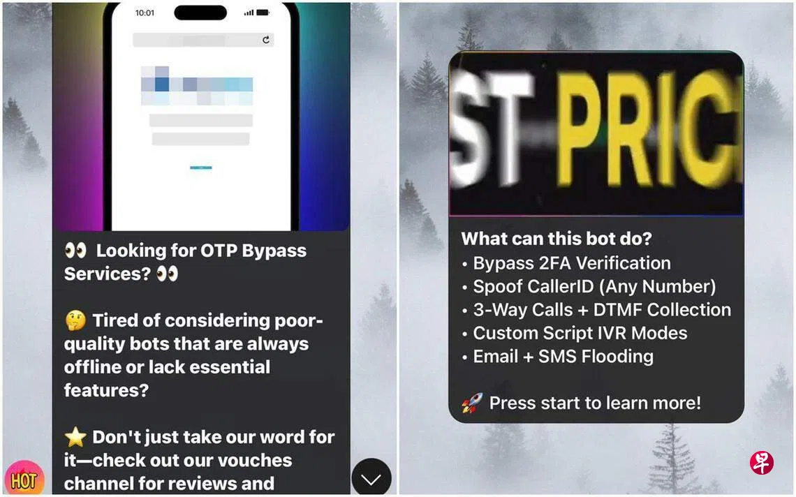 根据读者提供的信息,只要购买这款服务,输入受害者名字、电话和想要入侵的服务(例如付款公司等),该服务设置在Telegram内的网络机器人(bot)就能通过改号欺诈(spoofing)等手法从受害者那里得到一次性密码。