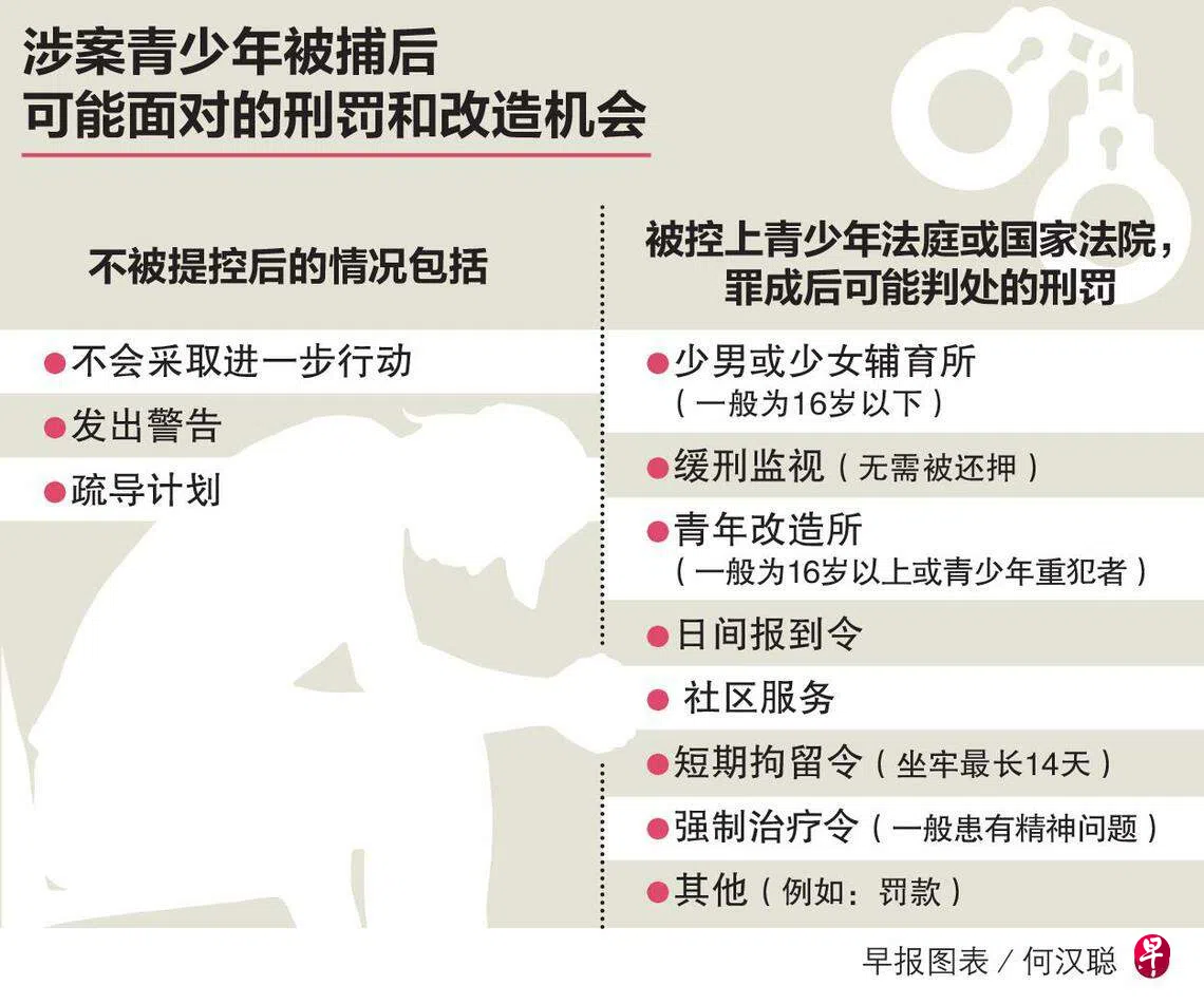 在新加坡,16岁以下者若罪成,可能会被送入少男或少女辅育所。2019年至2021年间,本地被判入辅育所的青少年以15岁至16岁者居多。