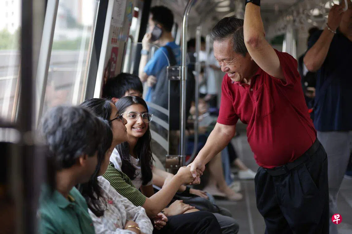 陈钦亮星期四(8月17日)早上走访勿洛蓄水池路熟食中心,与摊主和食客打招呼聊天,随后乘搭地铁,前往武吉班让熟食中心与巴刹。