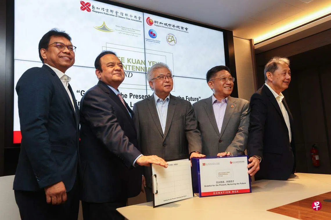 为纪念建国总理李光耀100岁冥诞,代表本地四大种族的五大社团和商会首次联手发动筹款,目标是在接下来一个月筹集1000万元,支持李光耀百年树人基金,以推展培育青年领袖和资助弱势学生的项目。公众也可通过签名向李光耀致敬。