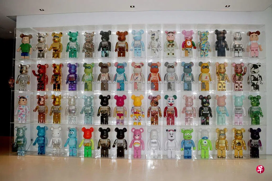 《联合早报》请许孝恩简单分析从照片所见的Bearbrick熊,并问他是否看得出收藏者抱着什么心态买熊。