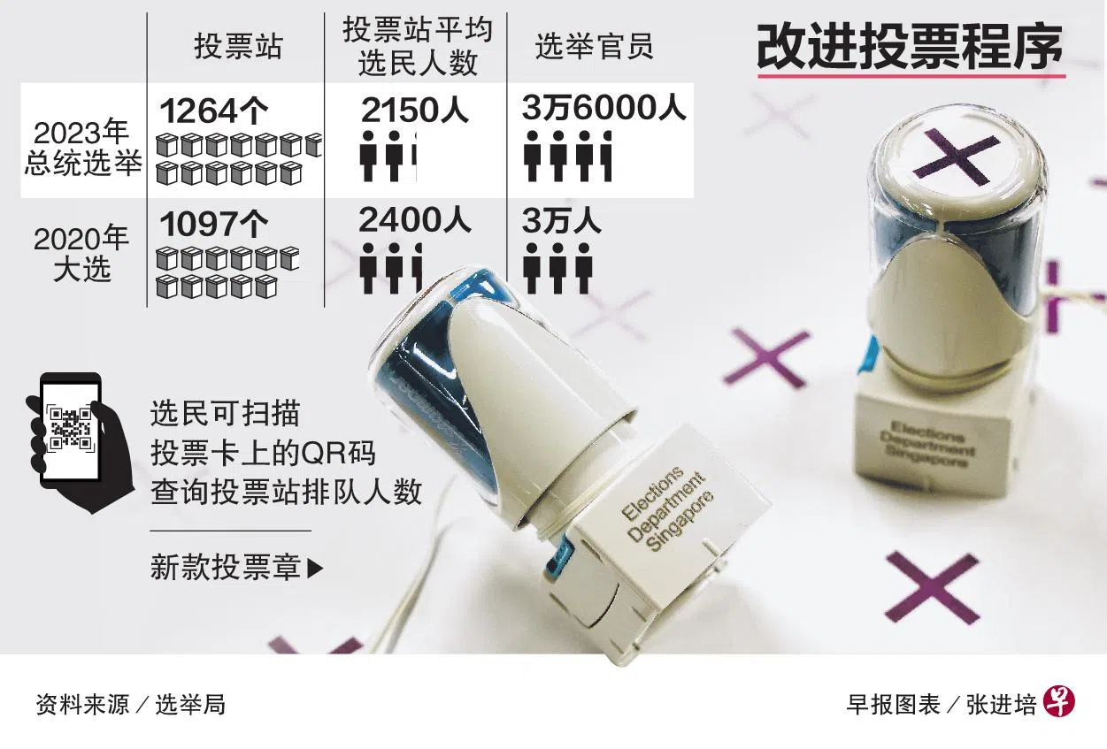 选民除了可通过Singpass里的电子投票卡和选举局网站,查看投票站的排队情况,也可扫描投票卡上的QR码,查询所属投票站的排队人数。
