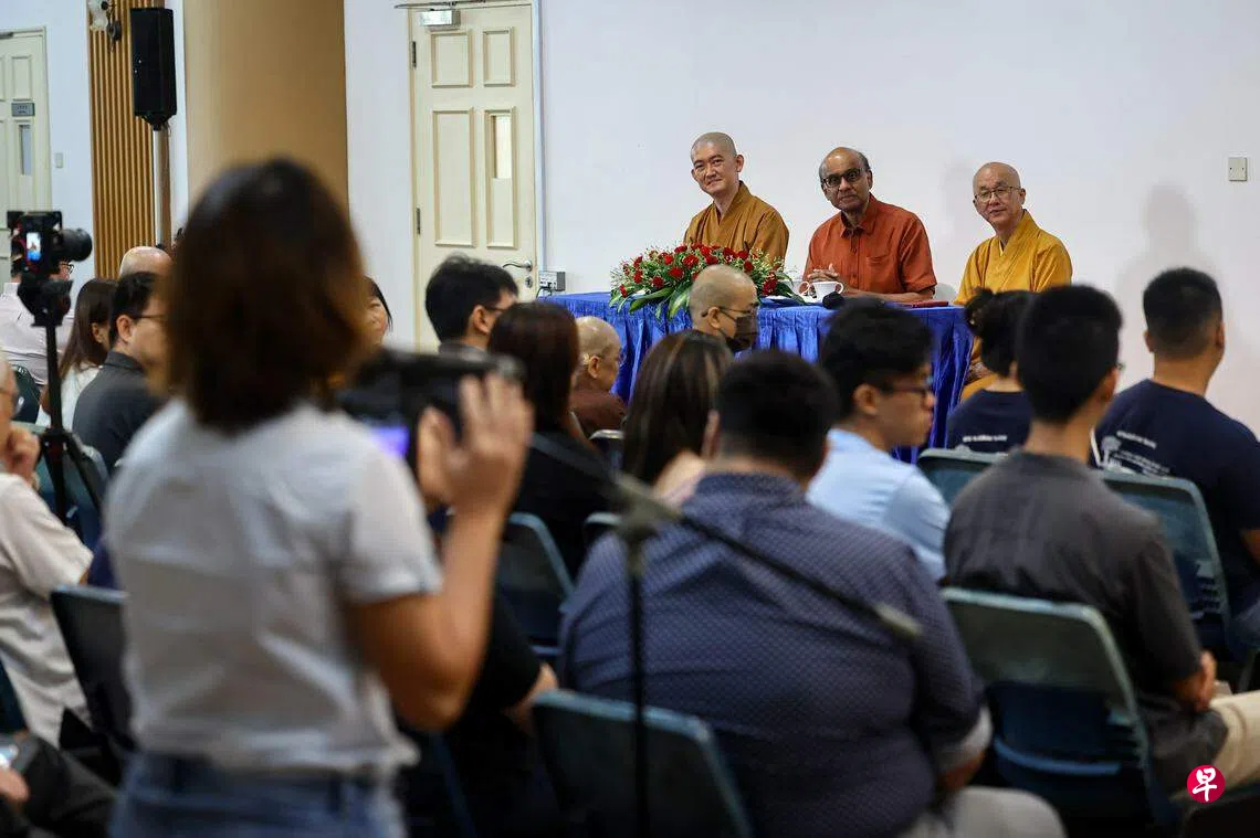 尚达曼和和夫人珍一藤木星期天(8月20日)走访光明山普觉禅寺,与超过100名佛教组织青年领袖和信徒,就教育制度、灵活工作安排和宗教等课题进行讨论。