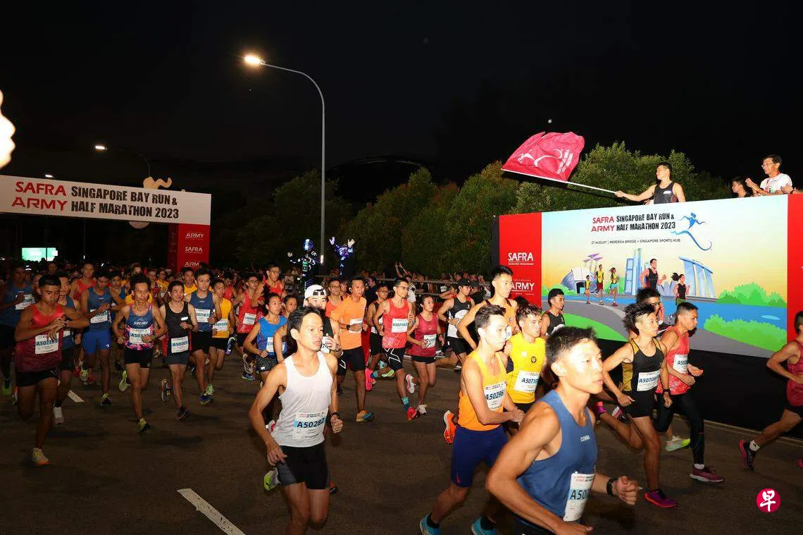 新加坡湾跑步大会兼陆军半程马拉松赛跑自2018年以来首次线下重启,吸引超过3万人报名参加,其中包括国民服役人员、前军人及他们的家属。