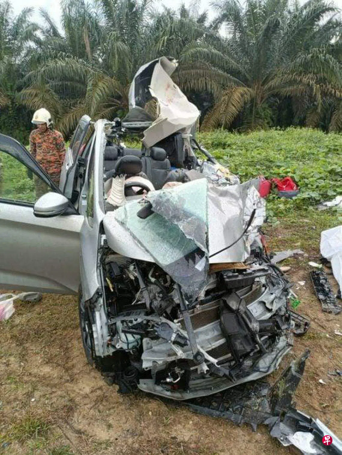 三女一男共乘休旅车进马来西亚,途中疑超车与迎面而来的罗厘相撞,猛烈撞击力导致车头严重损毁,三名56岁至61岁的女乘客伤重命丧车内。