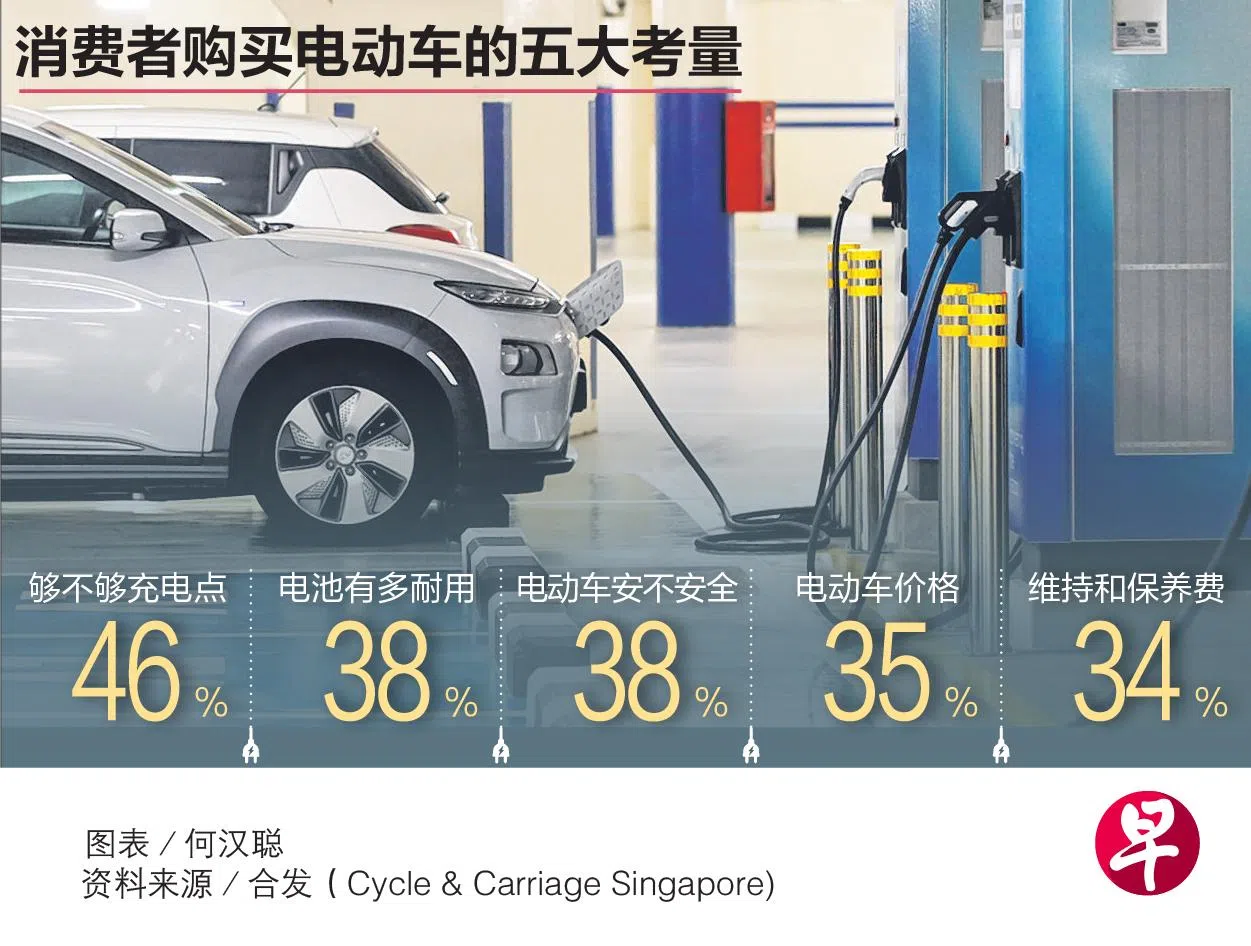 当被问及购买电动车的五大考量时,近半数受访者最关心充电点够不够,其次是电池的耐用性(38%)、电动车安不安全(38%)、电动车价格(35%),以及维持和保养电动车的费用(34%)。