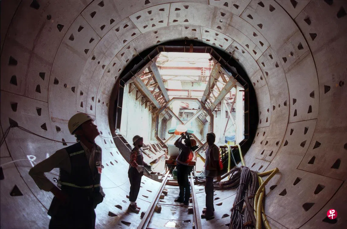 这张拍摄于1998年的照片显示,陆路交通管理局在给媒体介绍地铁东北线的隧道挖掘新技术——“新奥地利隧道挖掘施工方法”,以挖土机挖出长26公尺,直径8.9公尺的隧道。这种钻凿法不仅使整个工程更安全,也不会影响地面的建筑物和路面交通,把工程对居民造成的不便减至最低。