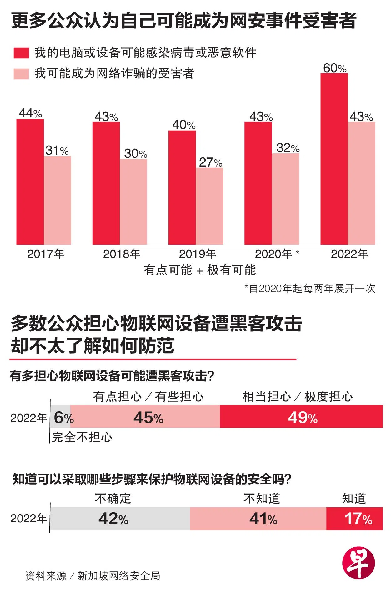 新加坡网络安全局星期六(9月9日)公布的2022年网络安全意识调查结果显示,近半(49%)的受访者相当或极度担心自己的物联网(IoT)设备遭黑客攻击。