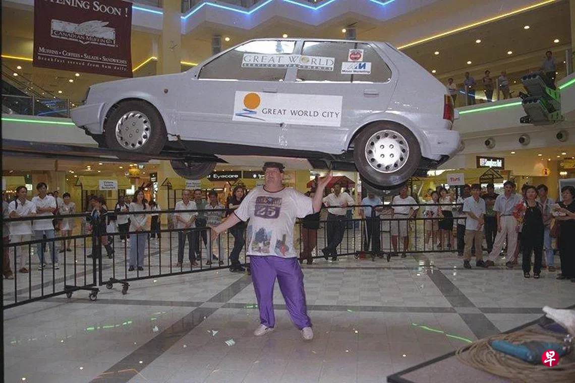 1998年3月,拥有“世界最强壮头颅”称号的英国人埃文斯(51岁),一连三天在世界城呈献九场绝技表演,展示他那惊人的头顶功夫。