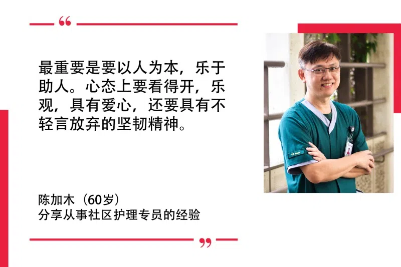 他鼓励有兴趣者加入社区护理专员行列,一起打造利于各年龄层的社区护理环境。
