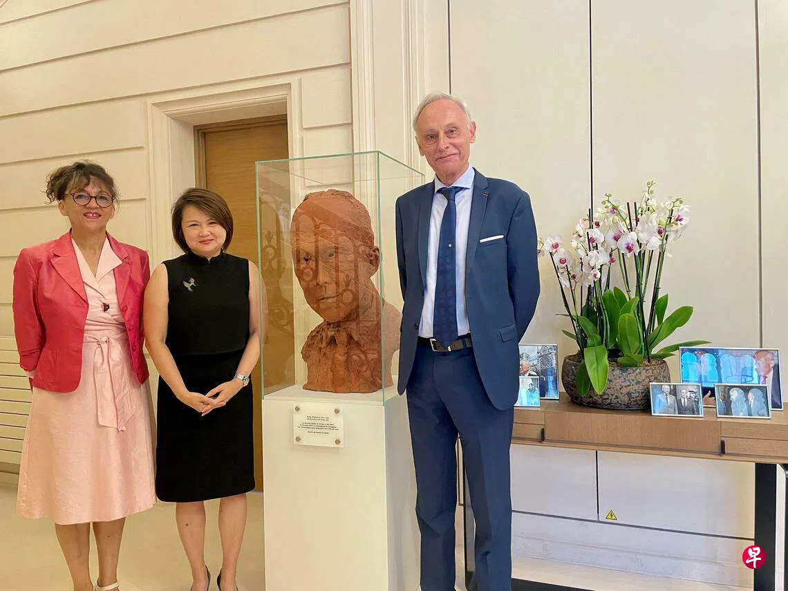 2013年,为了祝贺建国总理李光耀90岁大寿,相信是本地第一座的李光耀半身铜像在新加坡科技设计大学亮相。时隔10年,在纪念李光耀的百年冥诞之际,当时用来制作这个铜像的赤陶模型,如今赠予新加坡驻法国大使馆。
