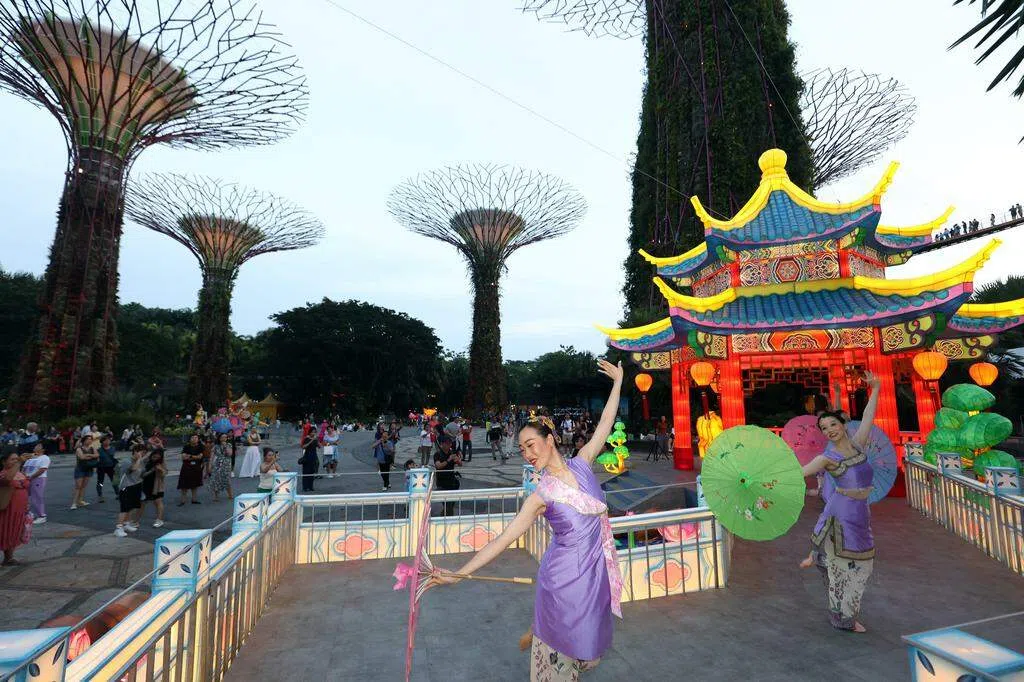 上千名公众和亲友一起手提灯笼,沿着滨海湾花园的小径一路观赏中秋花灯,沉浸在中秋佳节的喜悦气氛中。