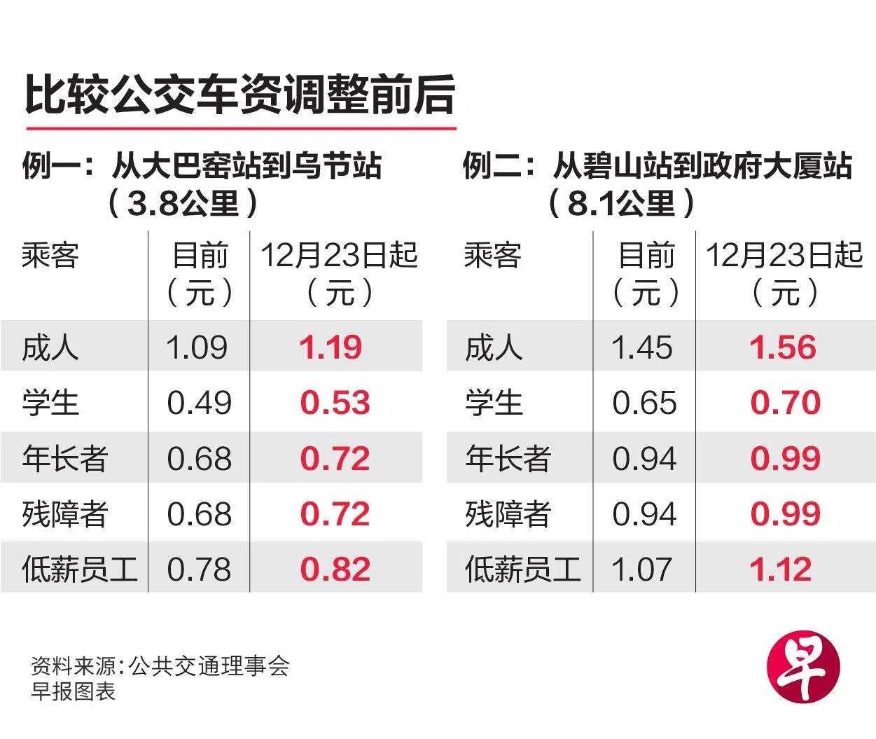 12月23日起,成人车资将上调1角至1角1分,是历来涨幅最高的一次。