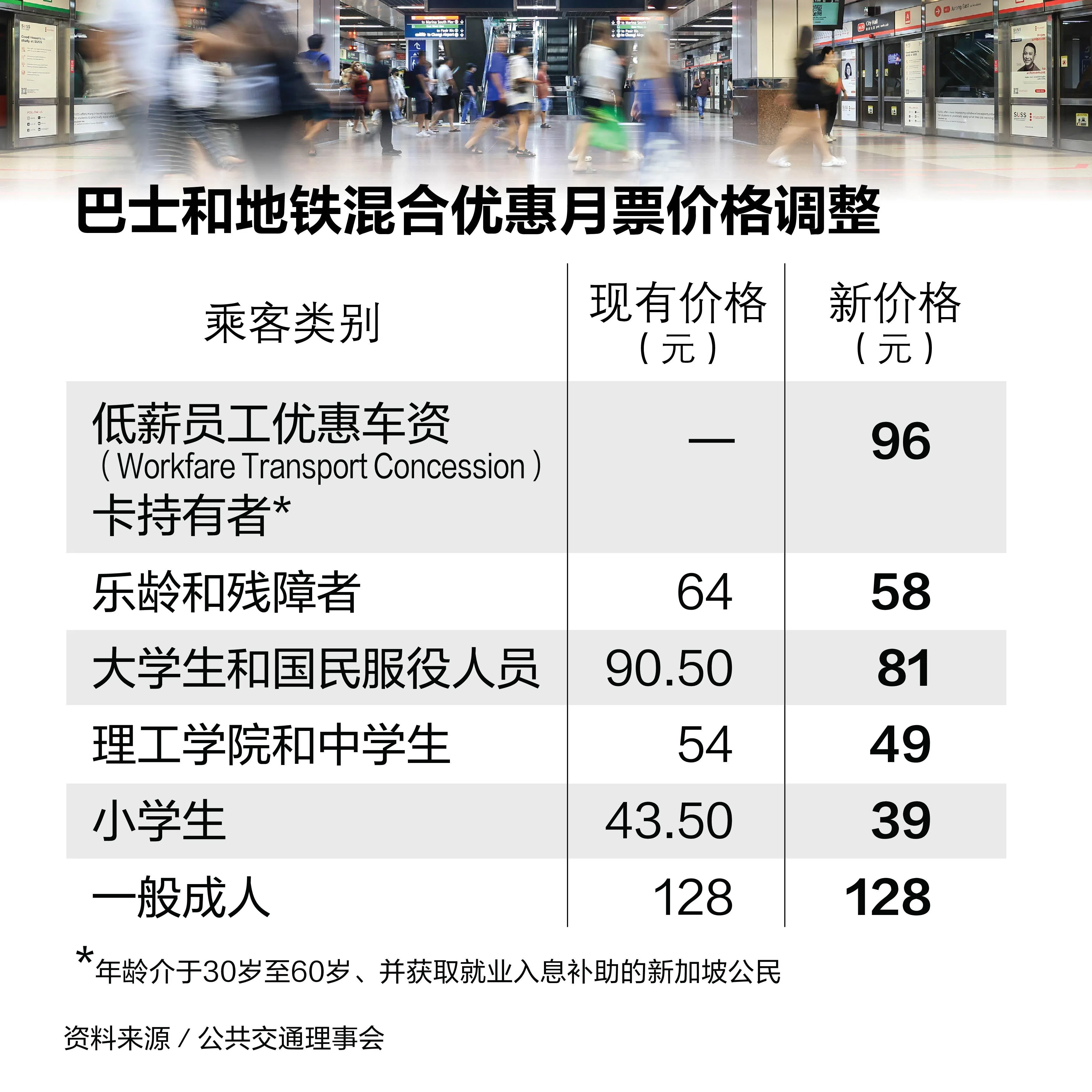 就业优惠车资计划(Workfare Transport Concession Scheme)下的低薪员工,到时也能以96元的价格,购买新的混合月票,这比一般成人混合月票便宜32元。估计约1600名频密使用公交的低薪员工,若改买优惠月票会更划算。