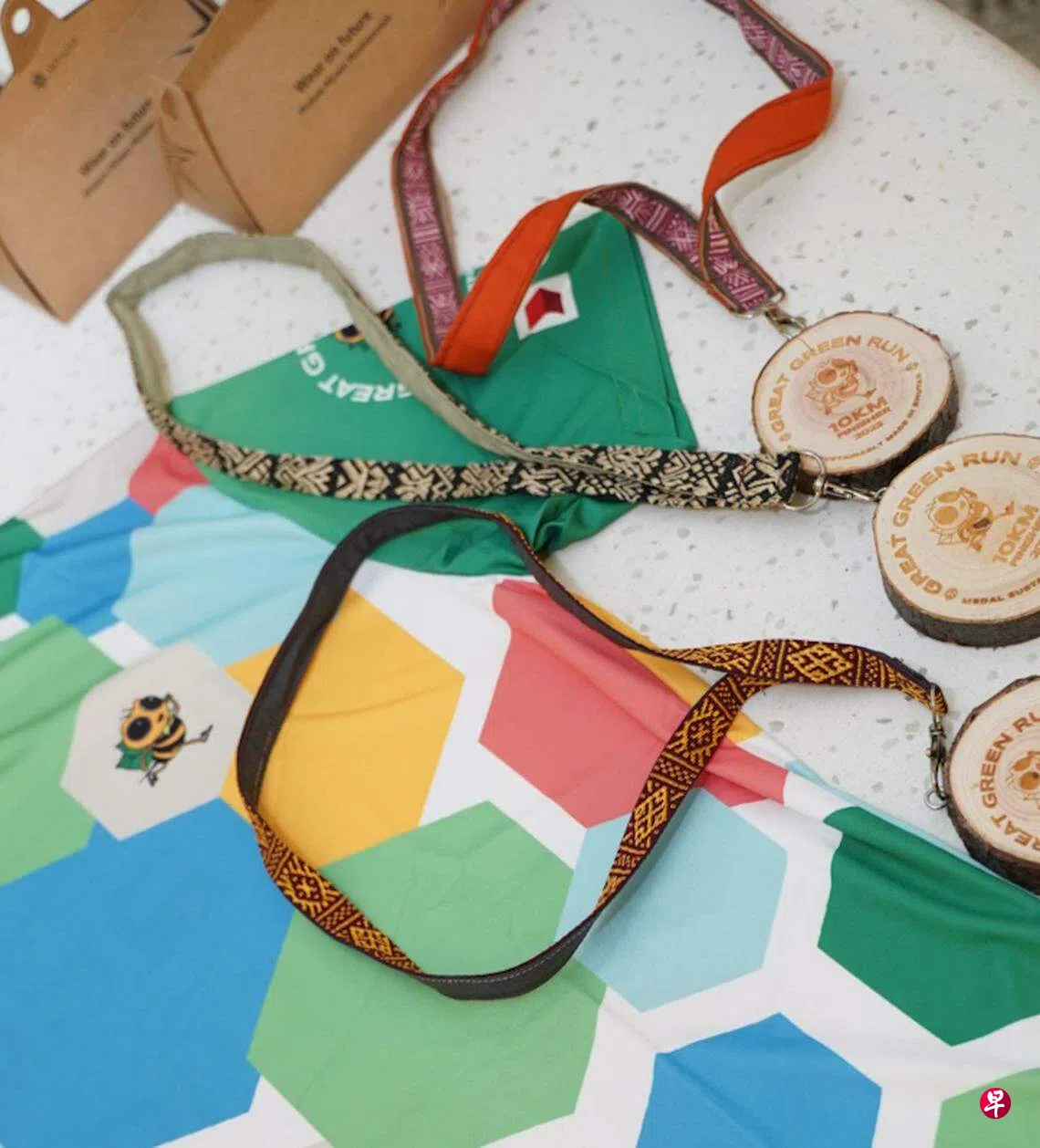 以环保材质印制运动衫、用废弃木材制作奖牌,本地机构举行路跑活动并融入大量绿色元素,希望借此提高公众的环保意识。