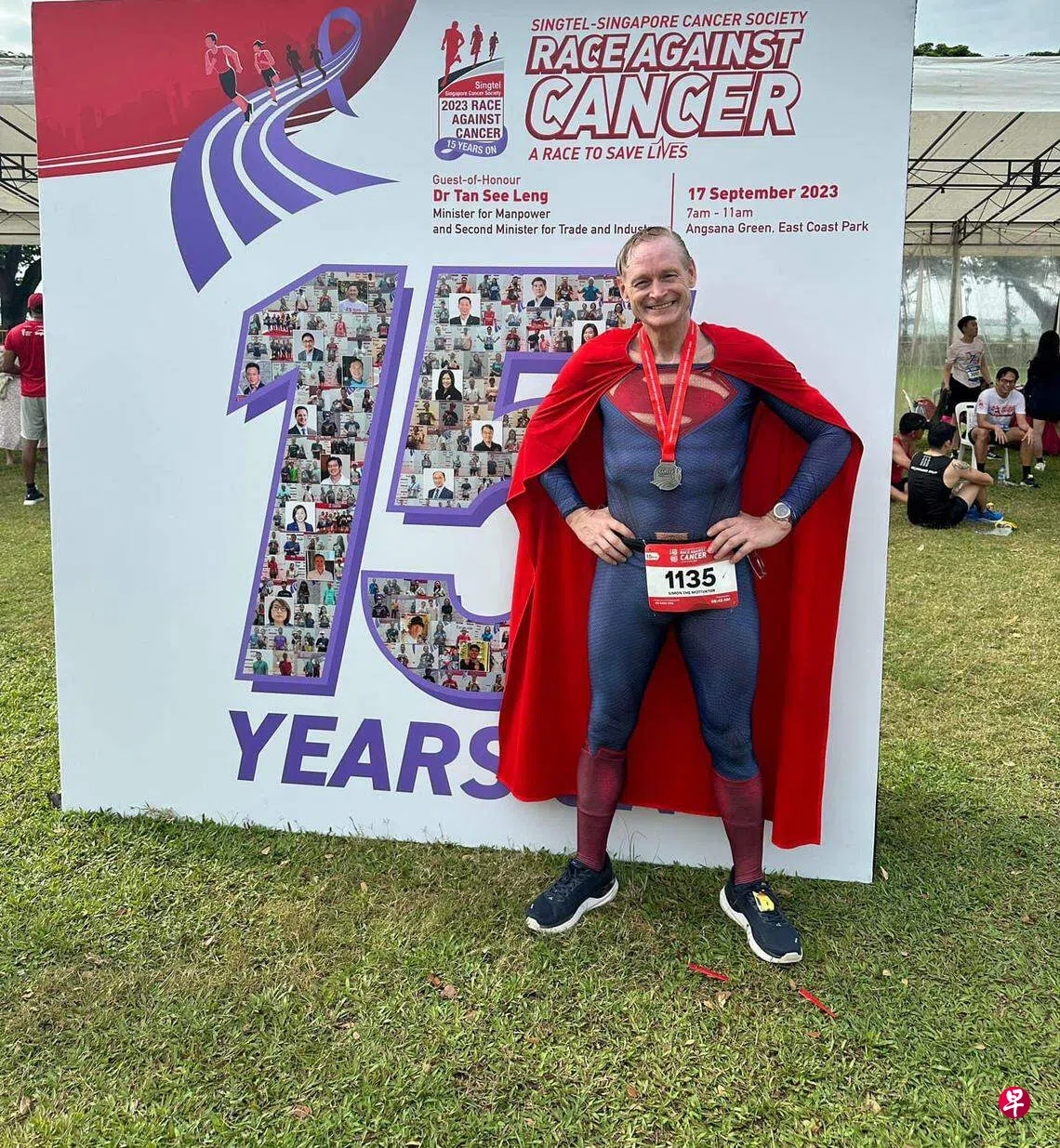 尽管新加坡天气炎热,但无阻伍德的热情,他甚至穿着贴身的超人服装,跑过多个马拉松活动和义跑。“其实单单穿上这身衣服就花了我20分钟,但我曾在高温50度的国家生活过,也曾在军队服役,因此不会特别怕热。”