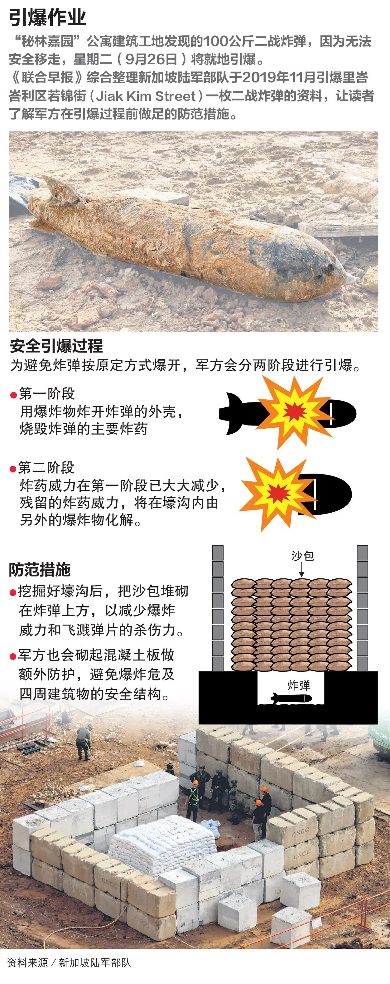 新发现的二战时期炸弹重约100公斤,比2019年11月在若锦街(Jiak Kim Street)引爆的50公斤二战炸弹重多一倍,这意味着爆炸强度明显增加,也需更注意所采取的爆炸防护工作。