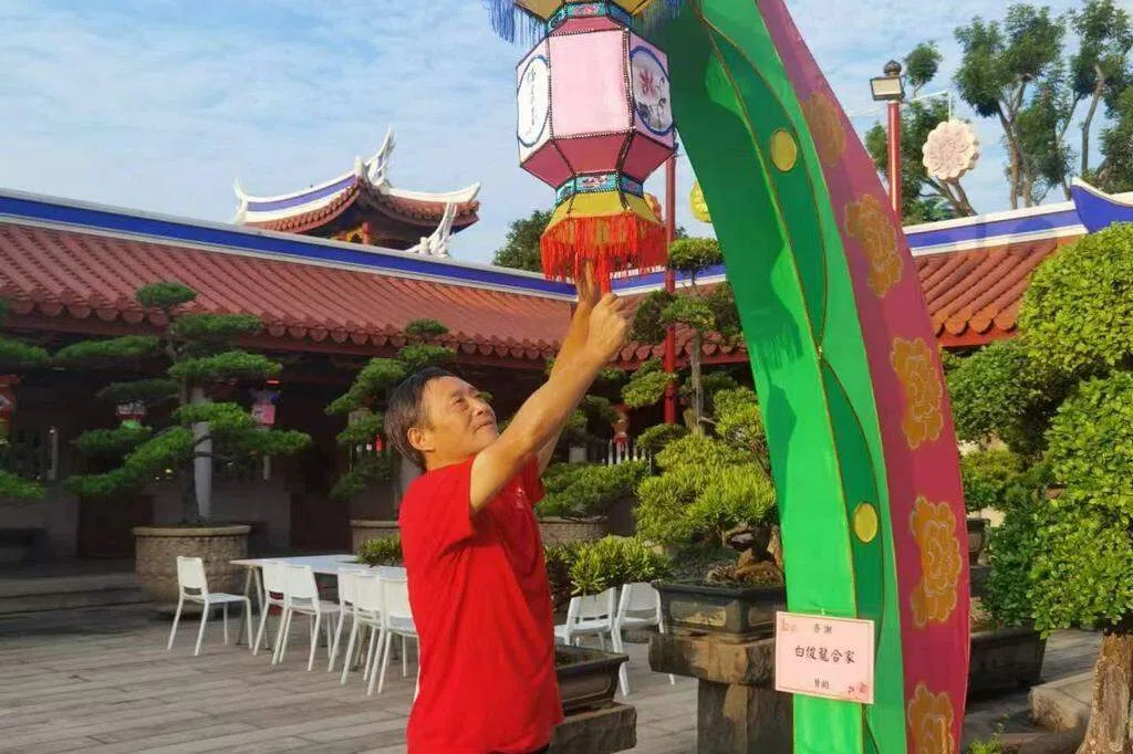 在工匠的巧手下,王靖翔的构思由平面画作,变成立体的花灯。站在这个长2.6米、宽1.3米的变色龙前,王靖翔不禁感慨:“这太震撼了,对我来说像梦想成真一样。”