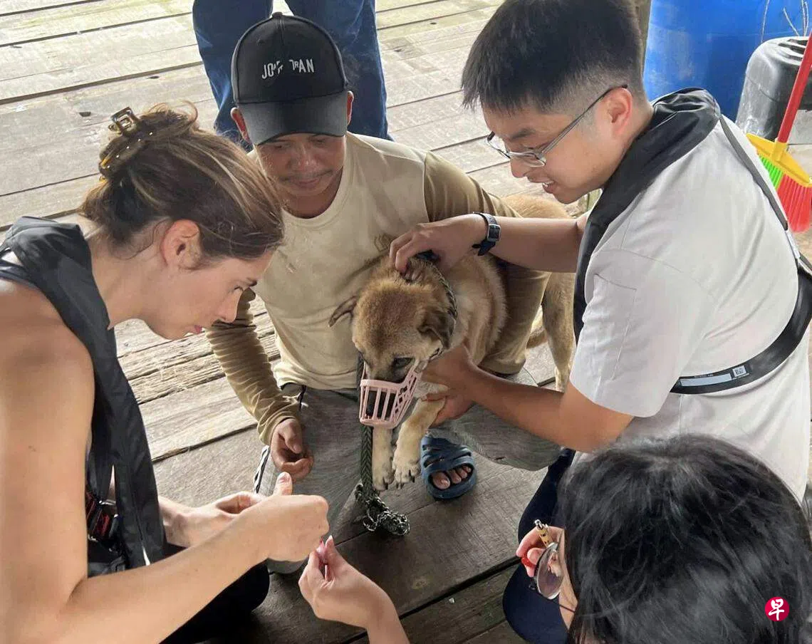 为乌敏岛和岸边渔场的狗注射狂犬病疫苗