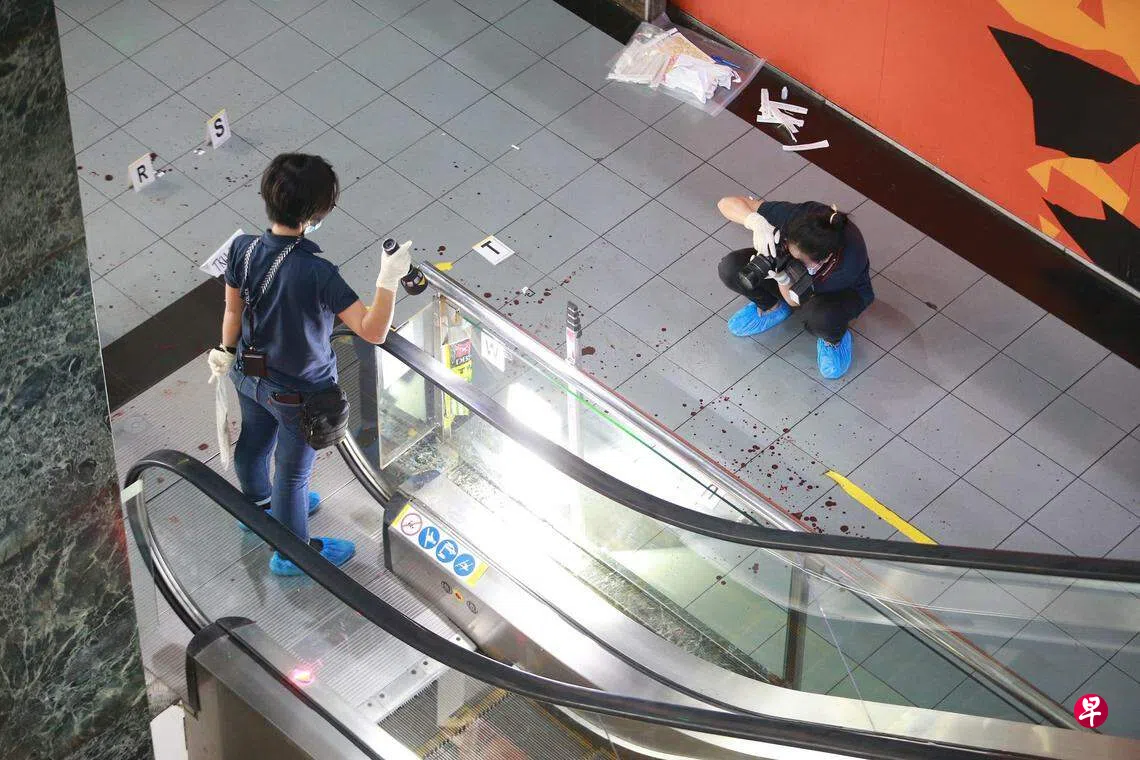 乌节豪杰大厦命案中唯一面对谋杀控状的被告开始受审,庭上播放电眼视频揭露,一组人在大厦一楼围殴死者,被告手握爪刀三次攻击对方,脖子中刀的死者试图走出大厦时倒地不起。
