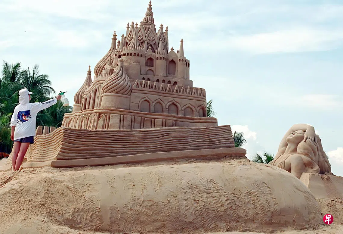 15座充满童话色彩的沙雕矗立在圣淘沙海滩上,场面十分壮观。