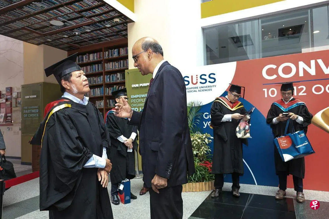 他受访时说,他退休前经营交通物流公司。他虽然已是老板,但自觉在知识掌握上还有不足之处,十多年前决定到淡马锡理工学院进修商学部分时间课程。跟一班年轻人一同学习,他不羞于“打破砂锅问到底”,更不吝于与小辈分享经验。“我已经多年没踏入学校,要是有任何东西不明白的话,当然要问。”