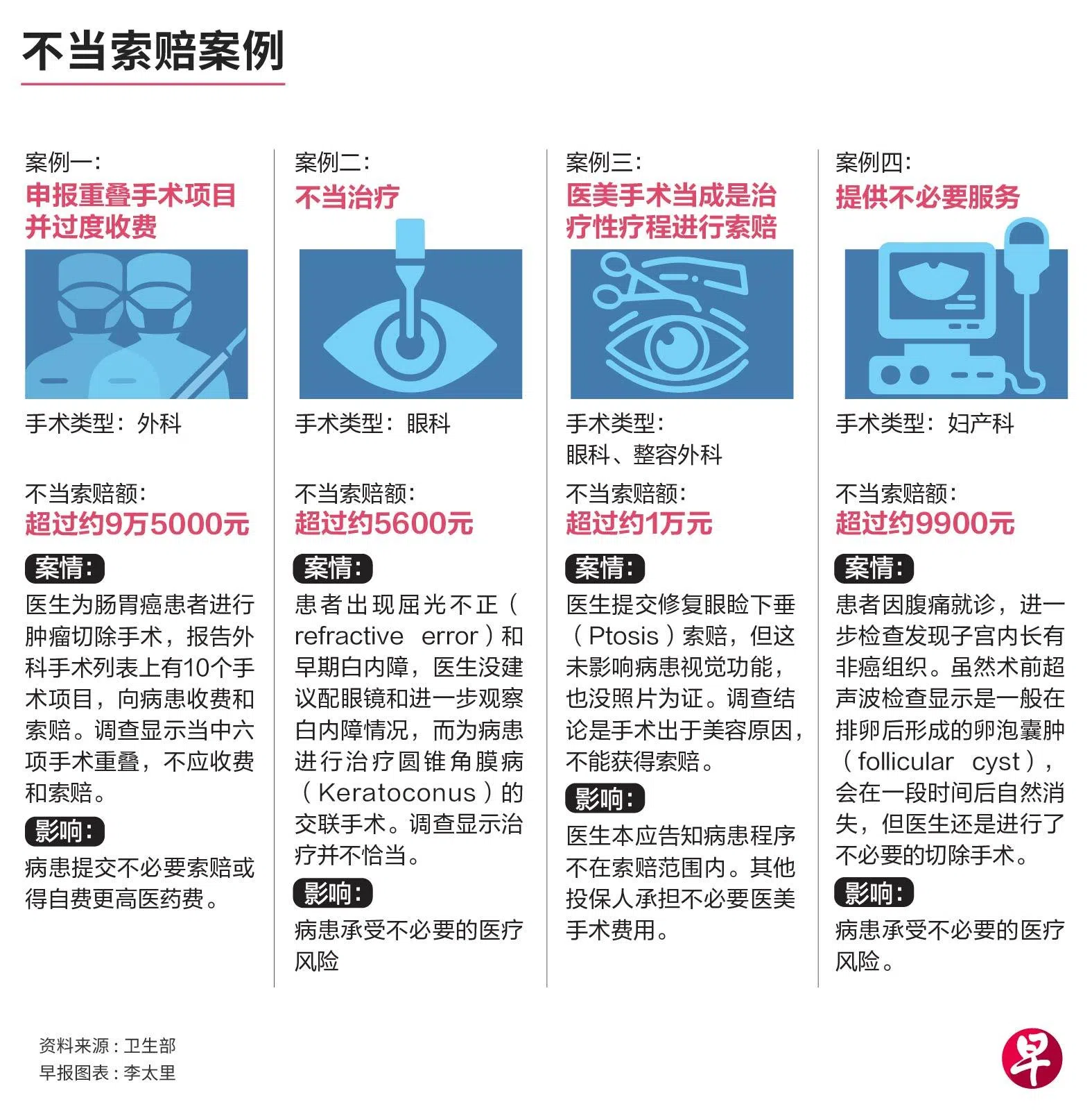 新加坡医药协会主席黄志光医生指出,提交不必要的手术索赔、美容手术索赔,或滥用外科手术列表(Table of Surgical Procedures,简称TOSP)以获得更高额索赔的医生占少数。