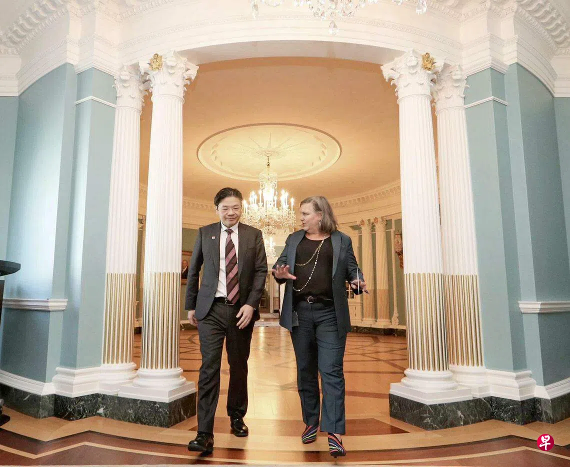 在同美国代理常务副国务卿纽兰(Victoria Nuland)会面时,黄循财说两人进行了“富有成果的讨论”,探讨如何在新领域扩大两国之间的合作。