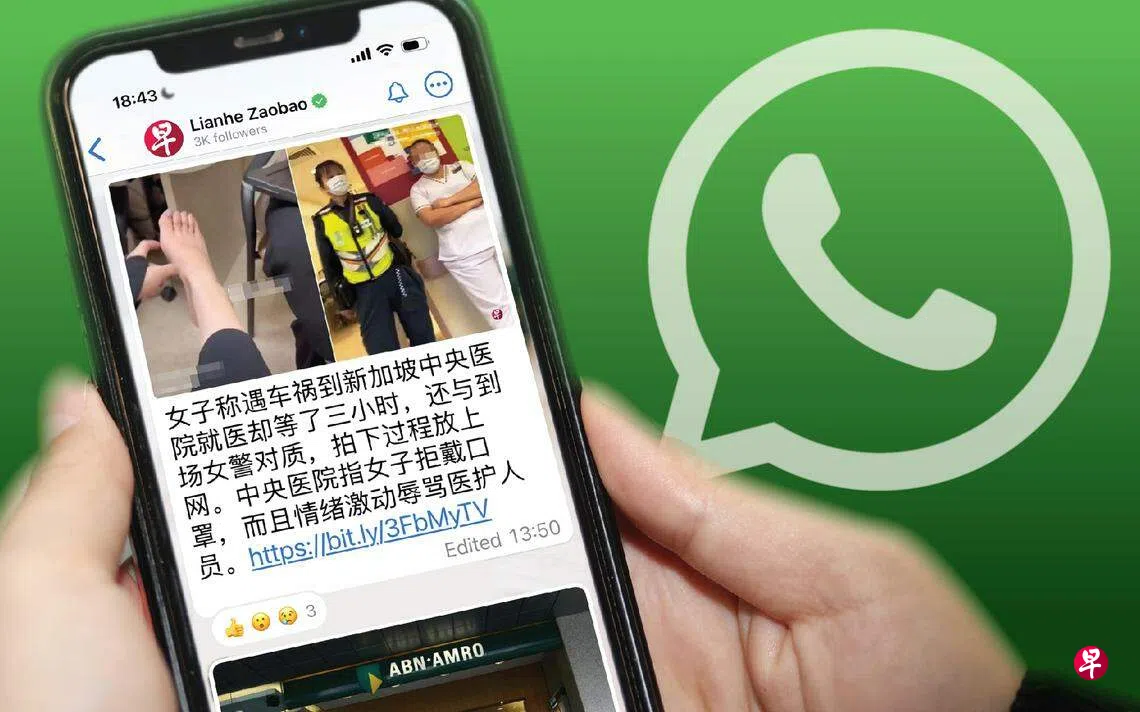 《联合早报》开通了WhatsApp频道,以简洁明了、图文并茂的方式推送新闻,让读者通过手机更方便掌握新闻。
