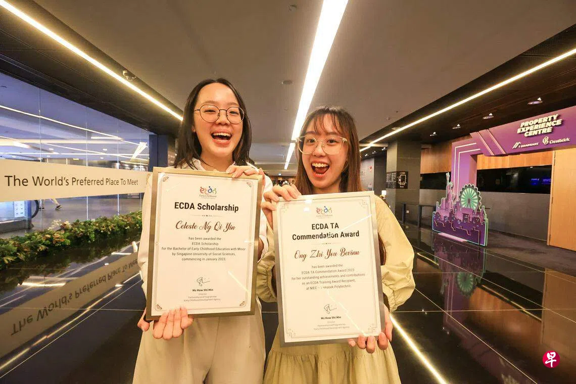 另有16名学习表现优异的培训奖得主获颁表彰奖,王祉尤(20岁)是其中一人。她在淡马锡理工学院完成学前教育课程后,今年在其中一所伊桥幼儿园(E-Bridge)当助理教师,目前照顾18个月至三岁的孩童。她说,自己不抗拒照顾幼童的琐碎工作,因为她相信学前教育的重要,希望有朝一日能实现开办幼儿园的梦想。