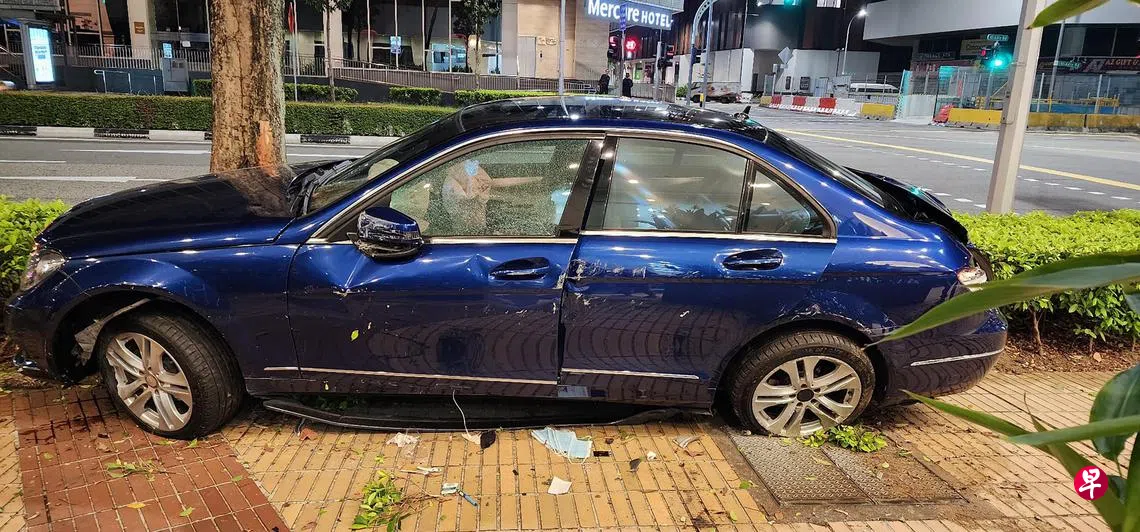 目击者徐小姐(50岁)告诉《新明日报》,她凌晨去吃宵夜时,看到一辆蓝色马赛地出车祸。“当时,马赛地从酒吧的方向右转出来,直接撞上路边的草丛跟树干,整辆车接着侧翻。”