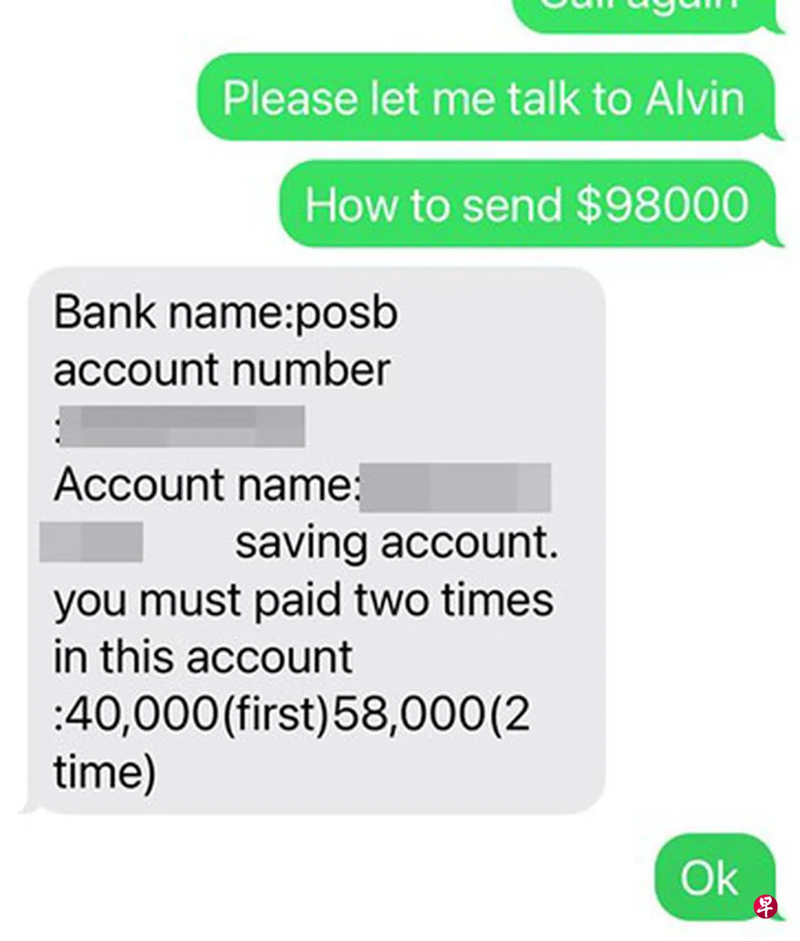 陈女士告诉《海峡时报》,该名自称埃尔文的男子,希望她成为中间人并帮忙付款。