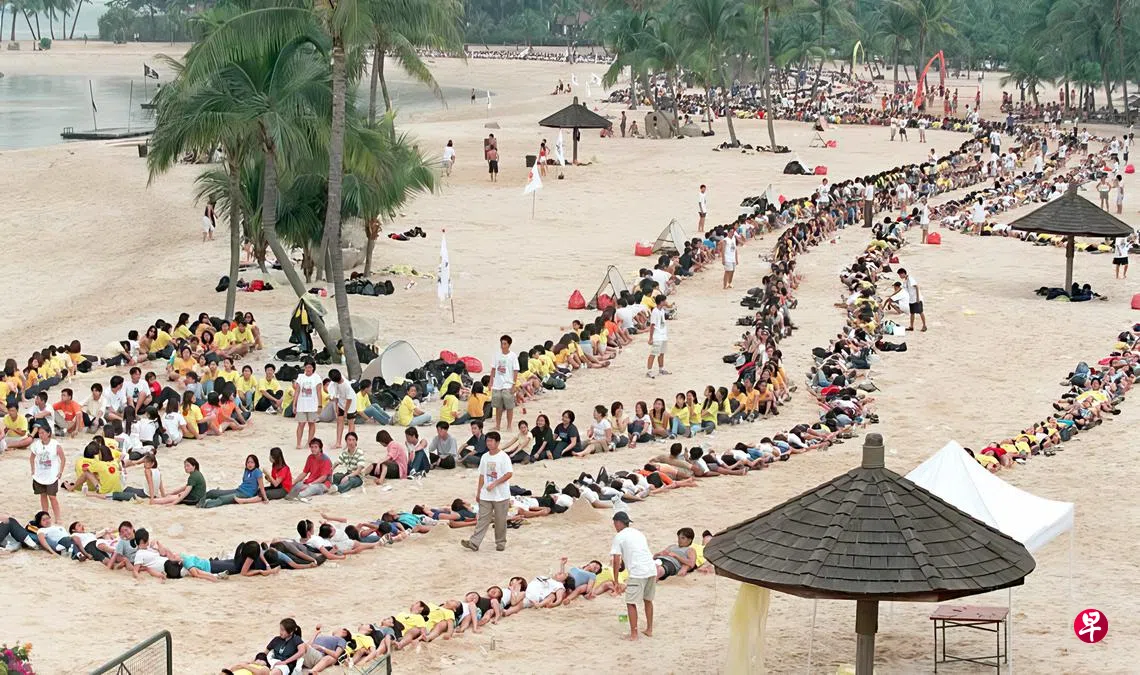 2000年9月30日,近1万名理工学院的学生在圣淘沙西罗索海滩上排列出全长4.2公里的“世界最长人体骨排阵”,为社会上的不幸人士筹款。
